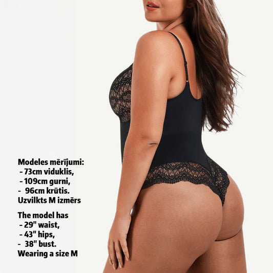 Viegli Koriģējošs Bodijs ar Mežģīnēm un Stringvieda Piegriezumu - Stella